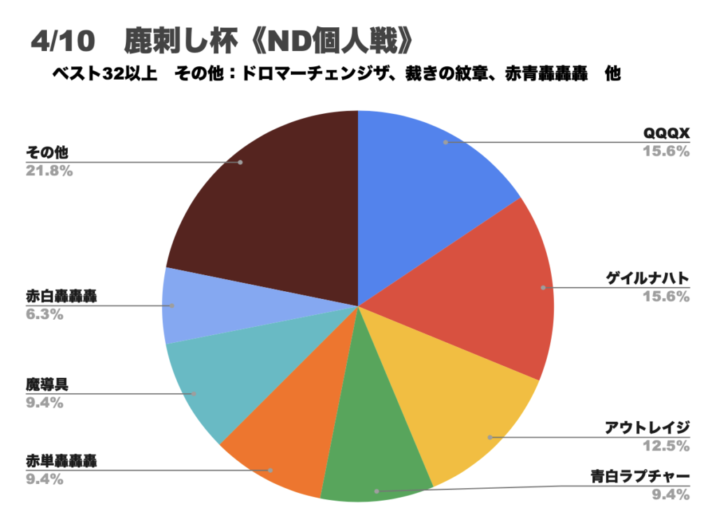 今回は2026/04/10に開催された鹿刺し杯の結果、デッキ分布図を掲載しています。